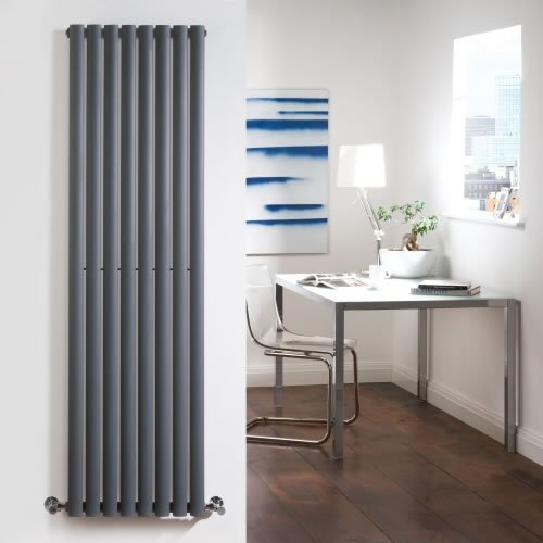 Product Features DRA007 - Radiateur Vertical Design Vitality - Acier haut de Gamme - Couleur Anthracite 1600 x 472mm - Chauffage central - 2200 watts - Double rang de 8 barres ovales. :