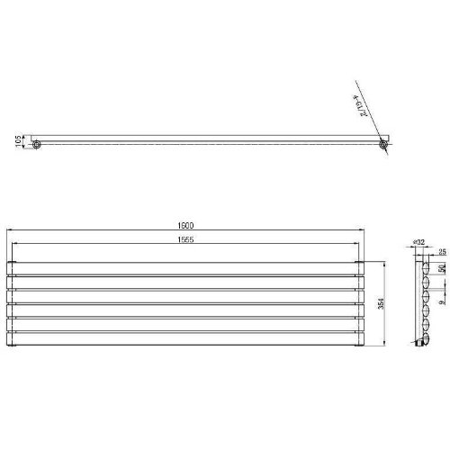 Description du produit DRB03HLB Radiateur Design Vitality - Installation horizontale - Acier Noir laqué - 6 Colonnes ovales - 1600 x 354mm - 1651 watts - Chauffage Central eau Chaude- Cuisine Salle de Bain - Garantie 20 ans :