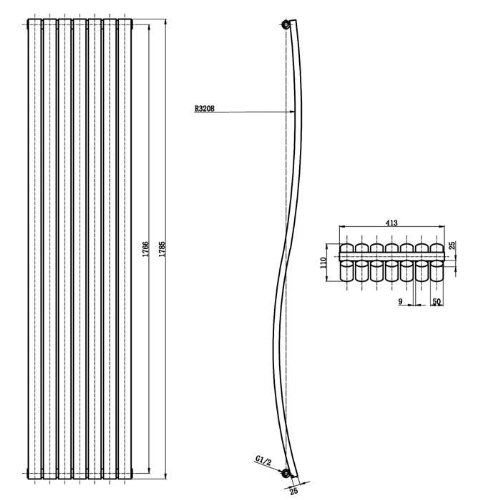 Détails sur le produit HLA95 Radiateur Vitality Vertical - Design Original Incurvé en Vagues - Acier Haut de Gamme peint Anthracite - 1785 x 413mm - 2186 watts - Garantie 20 ans. :